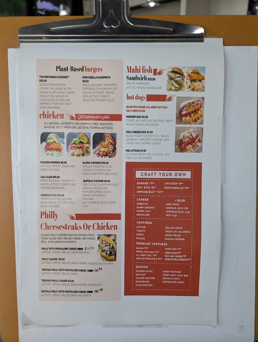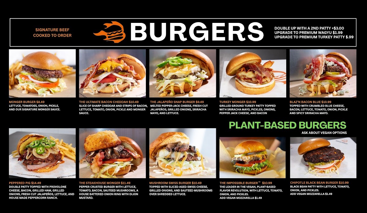LETTUCE, TOMATOES, ONION, PICKLE, AND OUR SIGNATURE MONGER SAUCE.